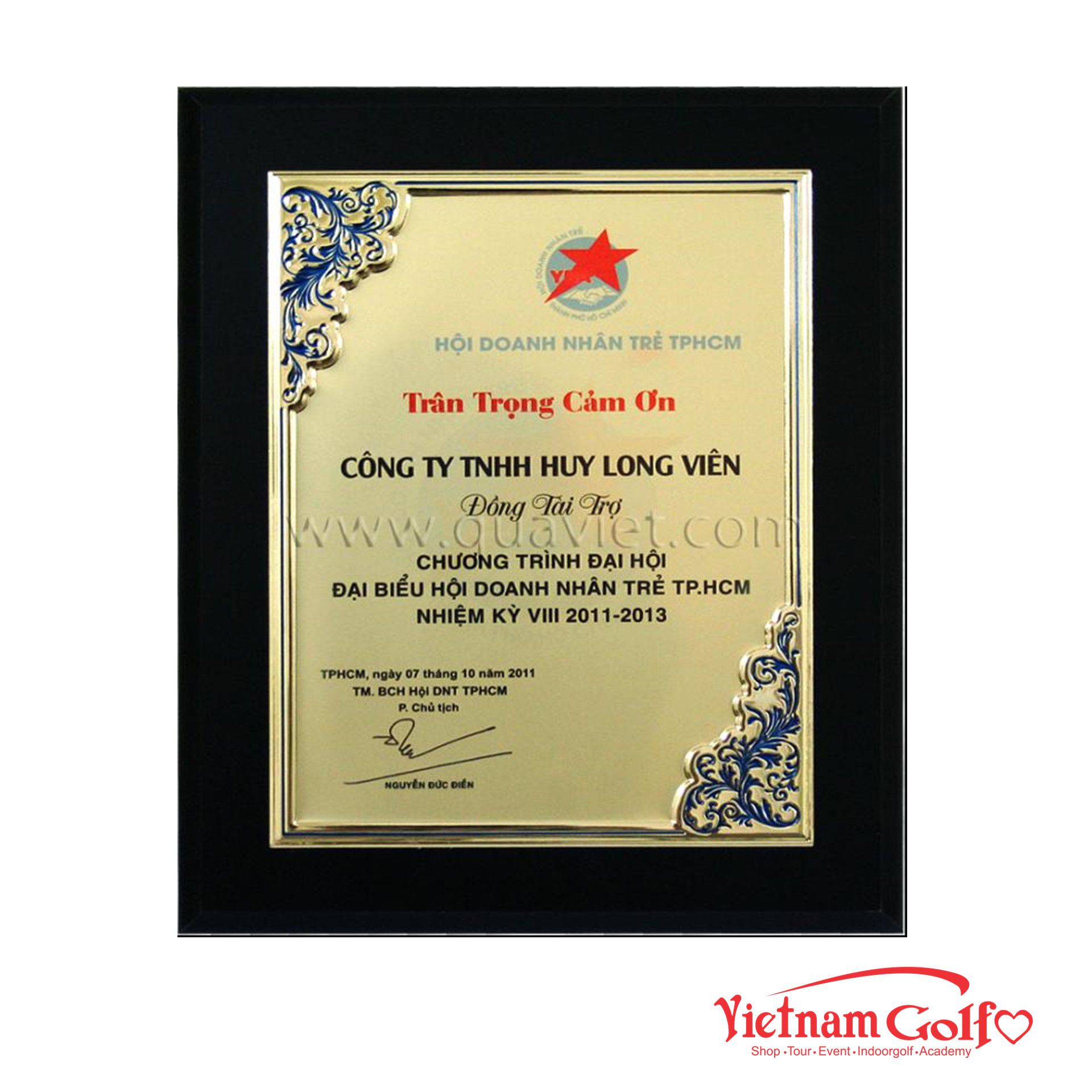 – Chất liệu: BVD đồng in ép nhiệt, mạ vàng
