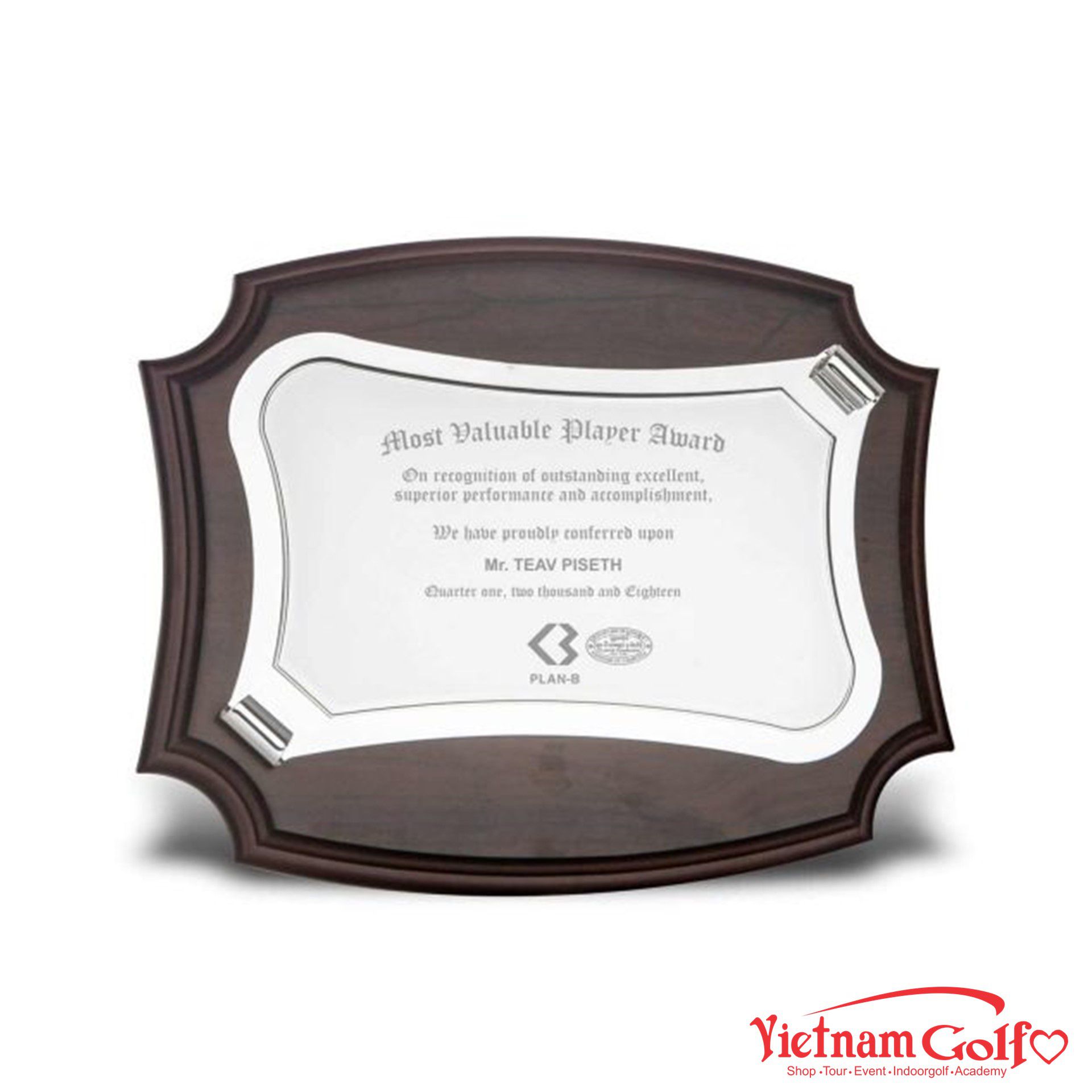 – Chất liệu: Đồng mạ bạch kim trên gỗ khiên anh đào
