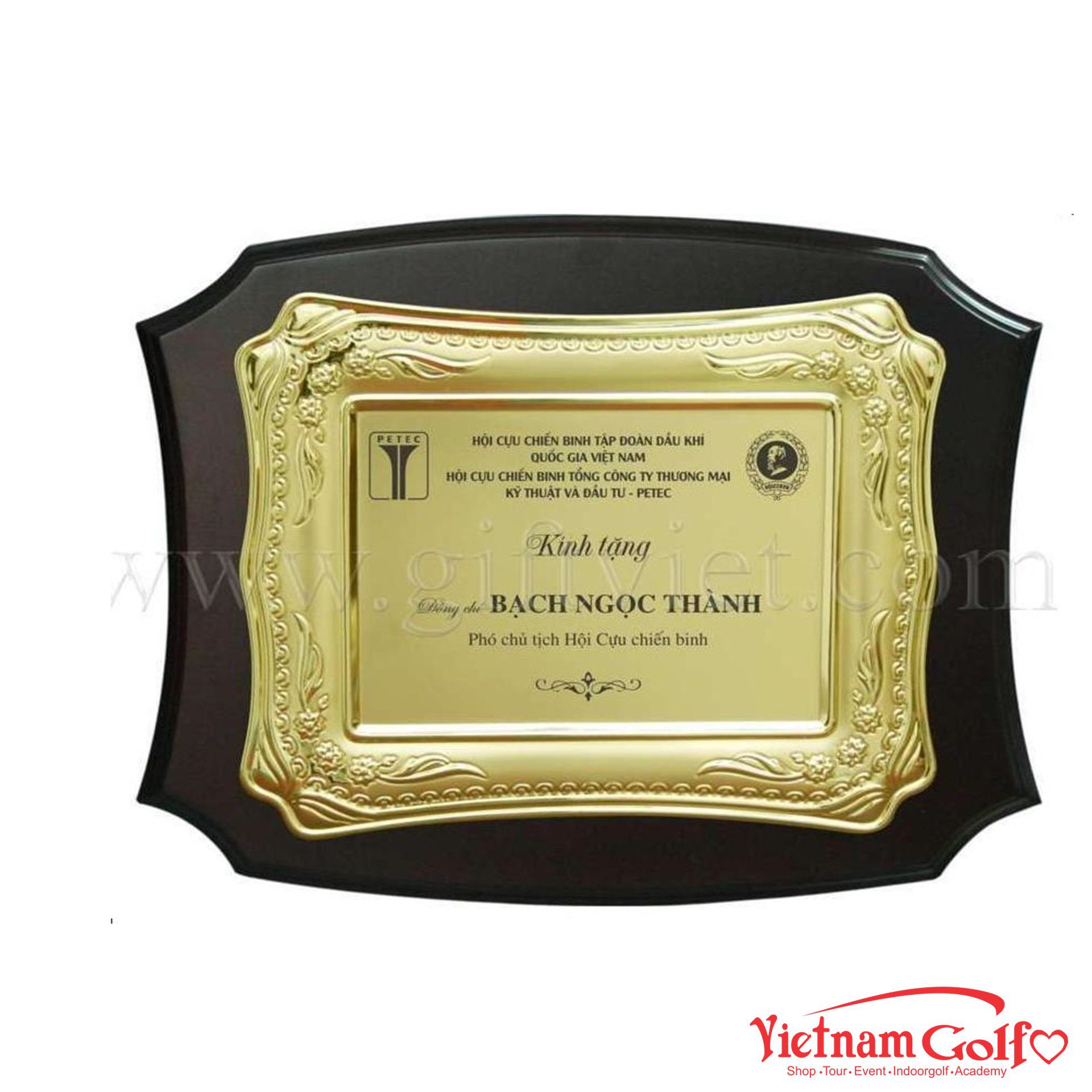 – Chất liệu: Đồng mạ bạch kim trên gỗ khiên anh đào
