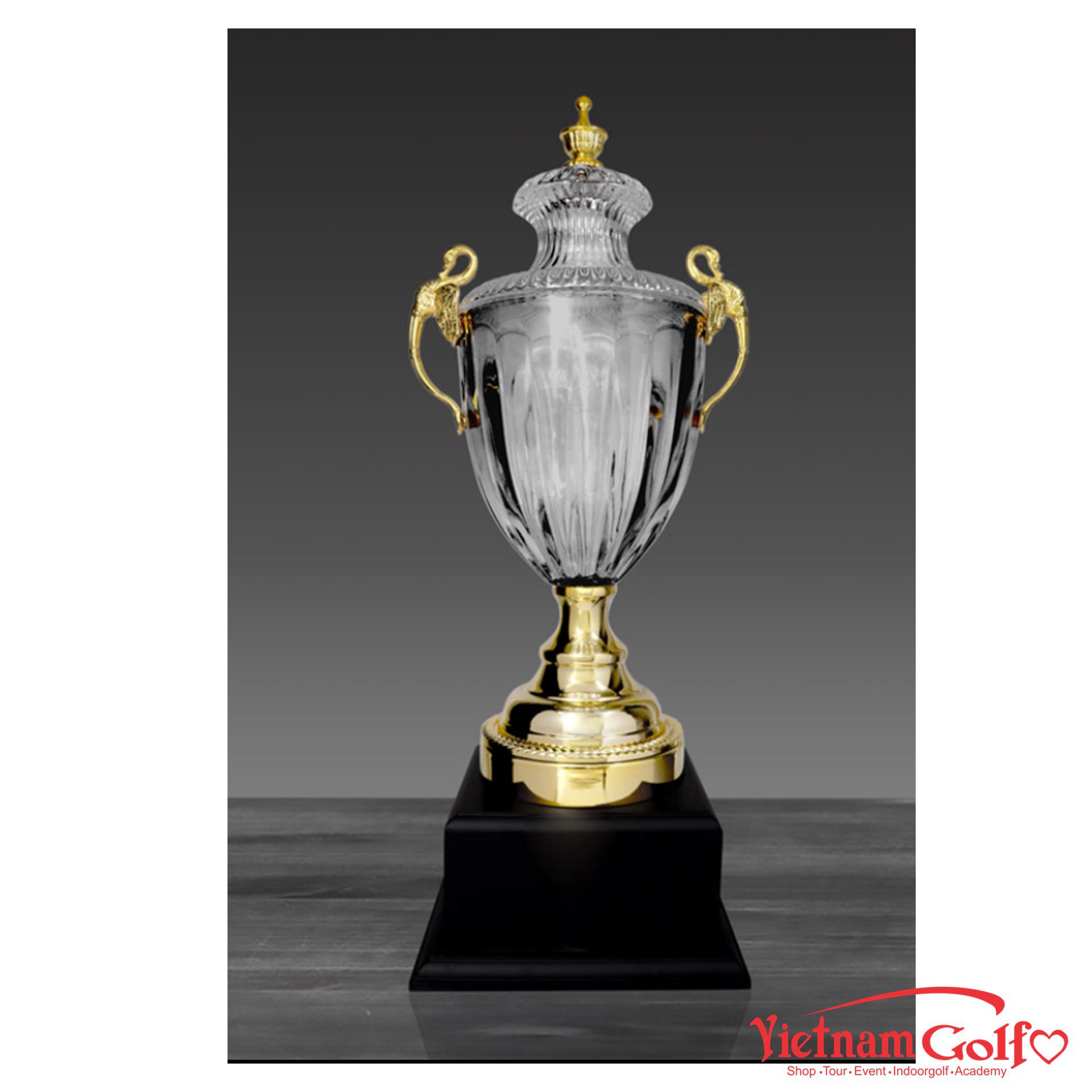Cúp nghệ thuật kim loại phối pha lê, KT Cao 610mm, Phi 160mm