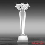 – Cúp pha lê trụ gắn biểu tượng bắt tay